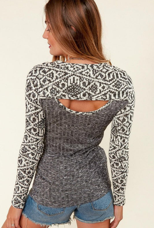 Ginny Plus Geometric Hacci Ribbed Fitted Top