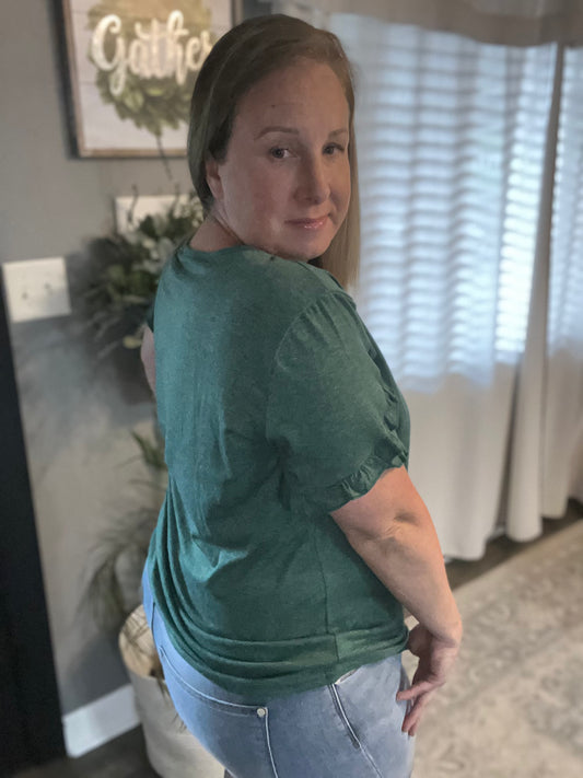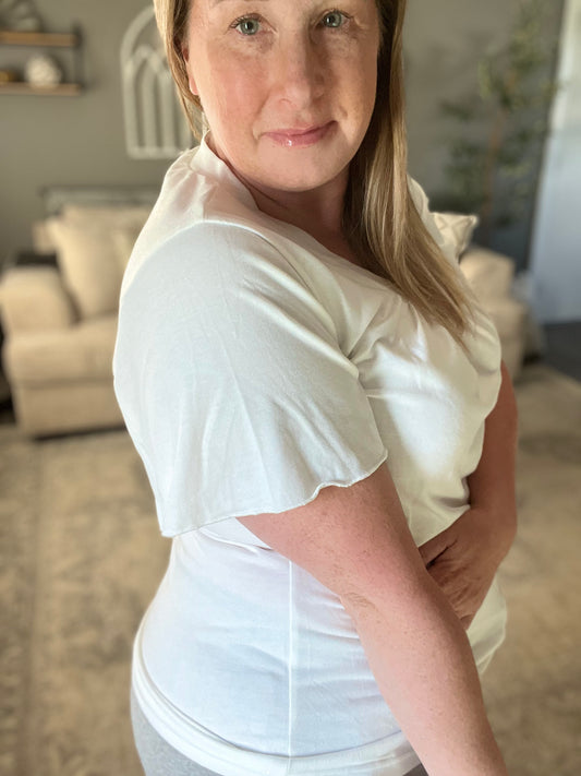 Shirred V neck Short Sleeve Tee FINAL SALE