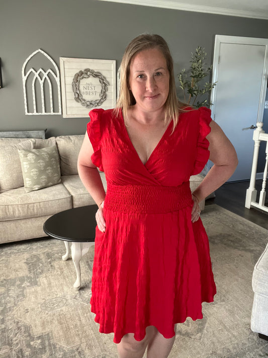 Smocked Ruffle Surplice Dress
