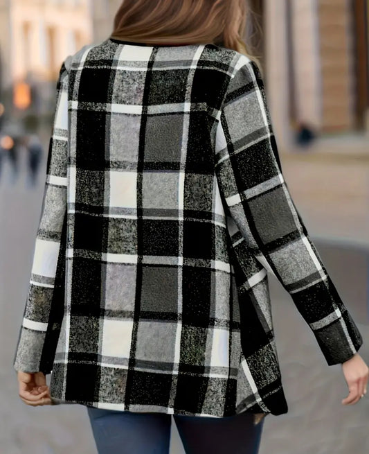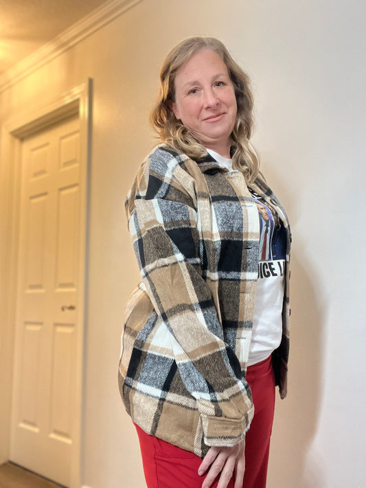 Fleece Checkered Puff Sleeve Bomber Jacket