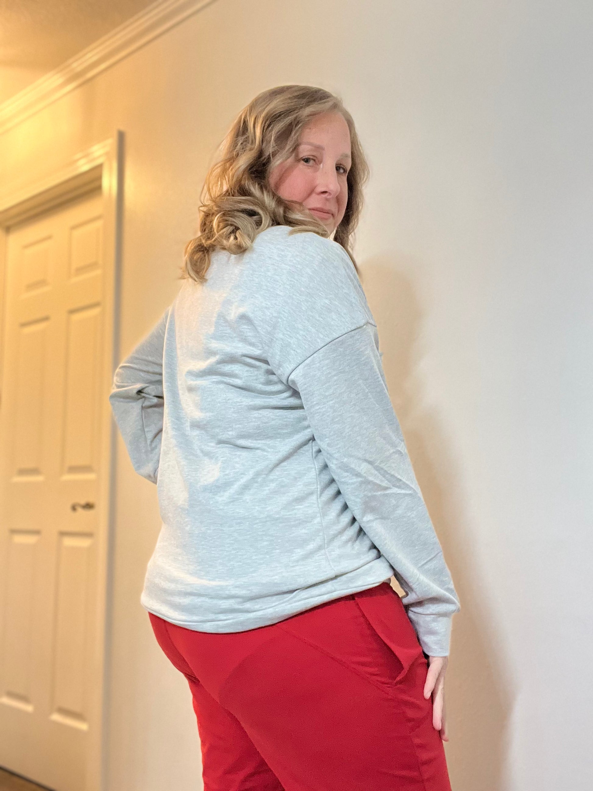 This movie is definitely a holiday tradition right down to the leg lamp. This crewneck is so versatile. Layerit with a vest or wear it alone. I’m wearing a medium but feel free to size up if you prefer a looser fit. -HUGS-Melissa