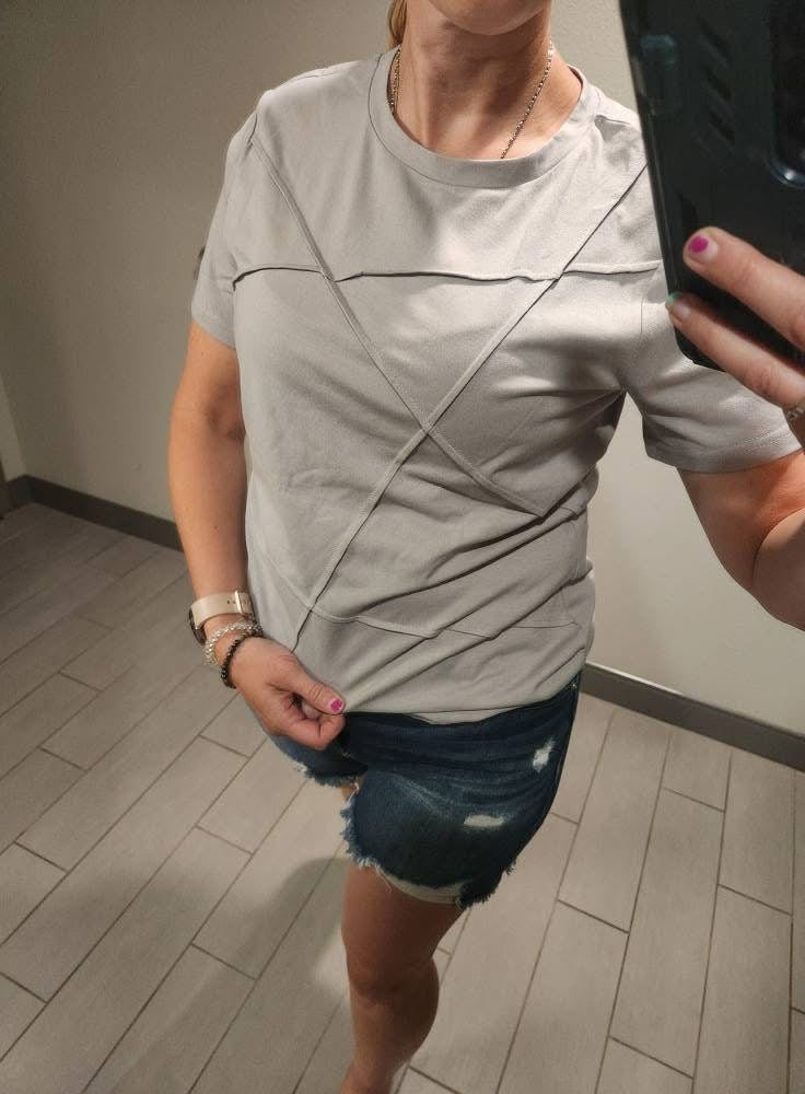 "Add a touch of casual edginess to your daily wear with the Exposed Toothpick Seemed Top. Featuring a round neck for a laidback look, this top is perfect for those who like to keep it stylish and effortless."