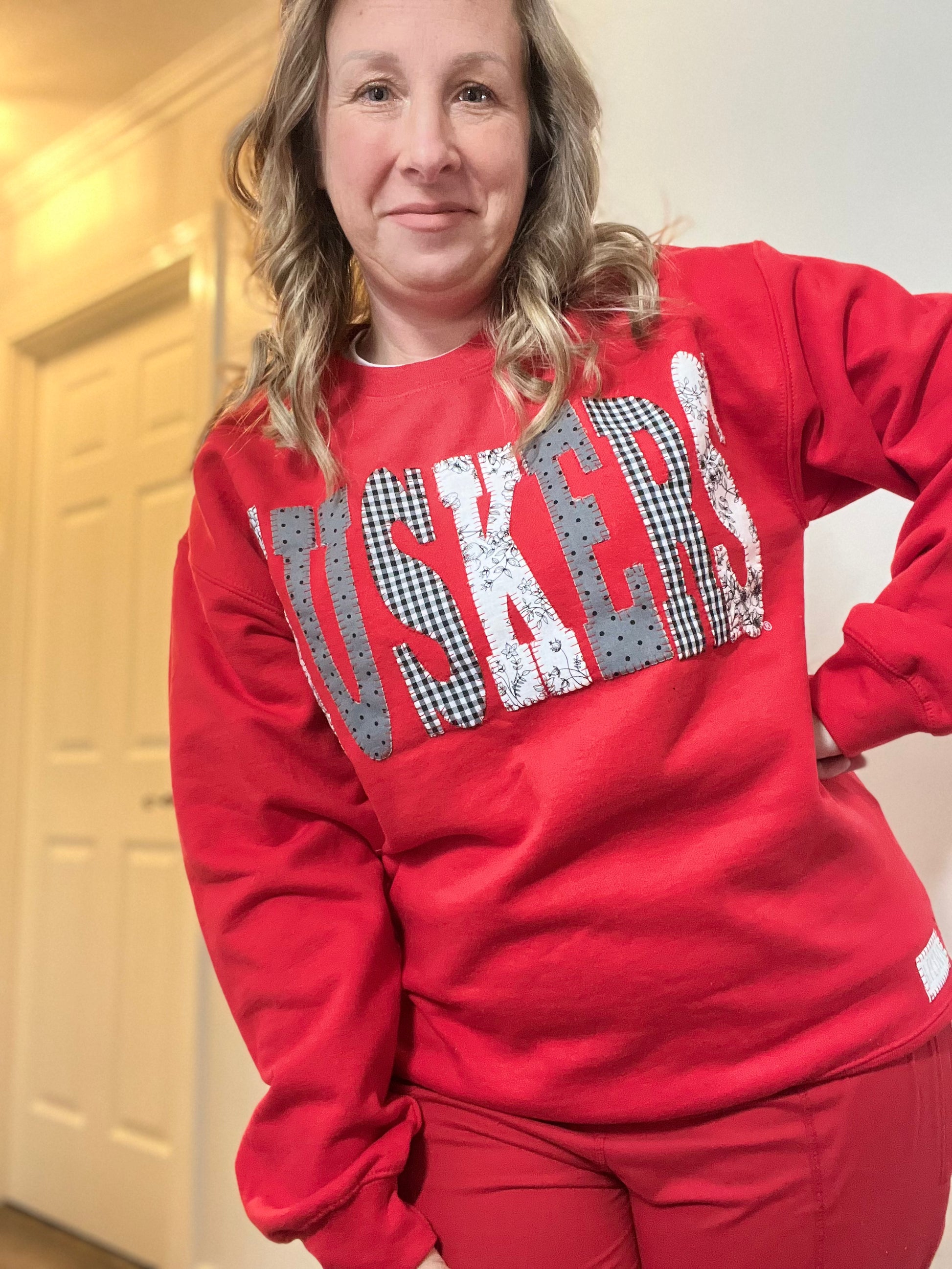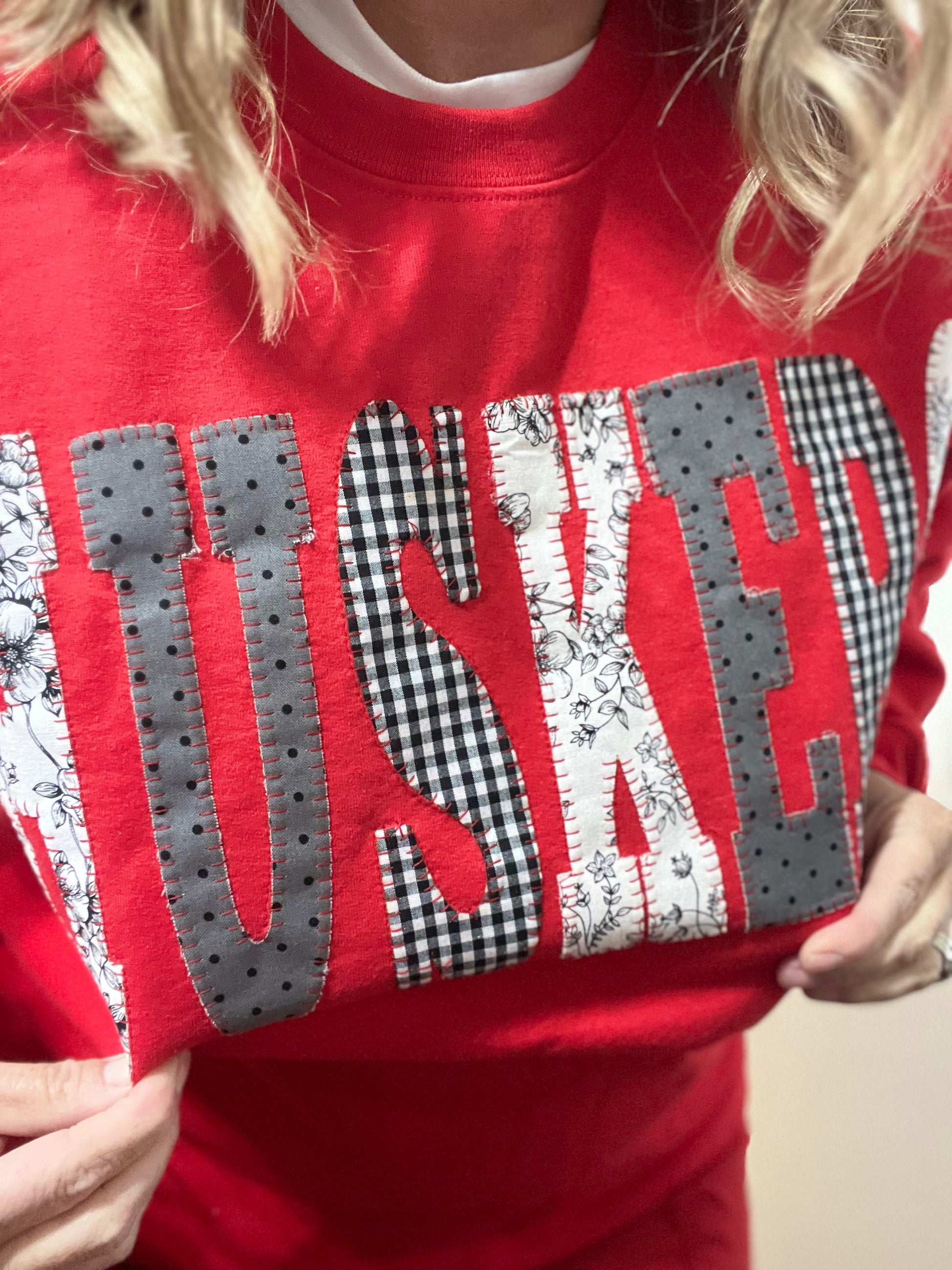 Add some playful charm to your wardrobe with our Patchwork Husker Appliqué Crewneck! Hand-appliquéd letters bring exceptional quality to this versatile unisex fit. Let your unique style shine with mismatched letter prints.