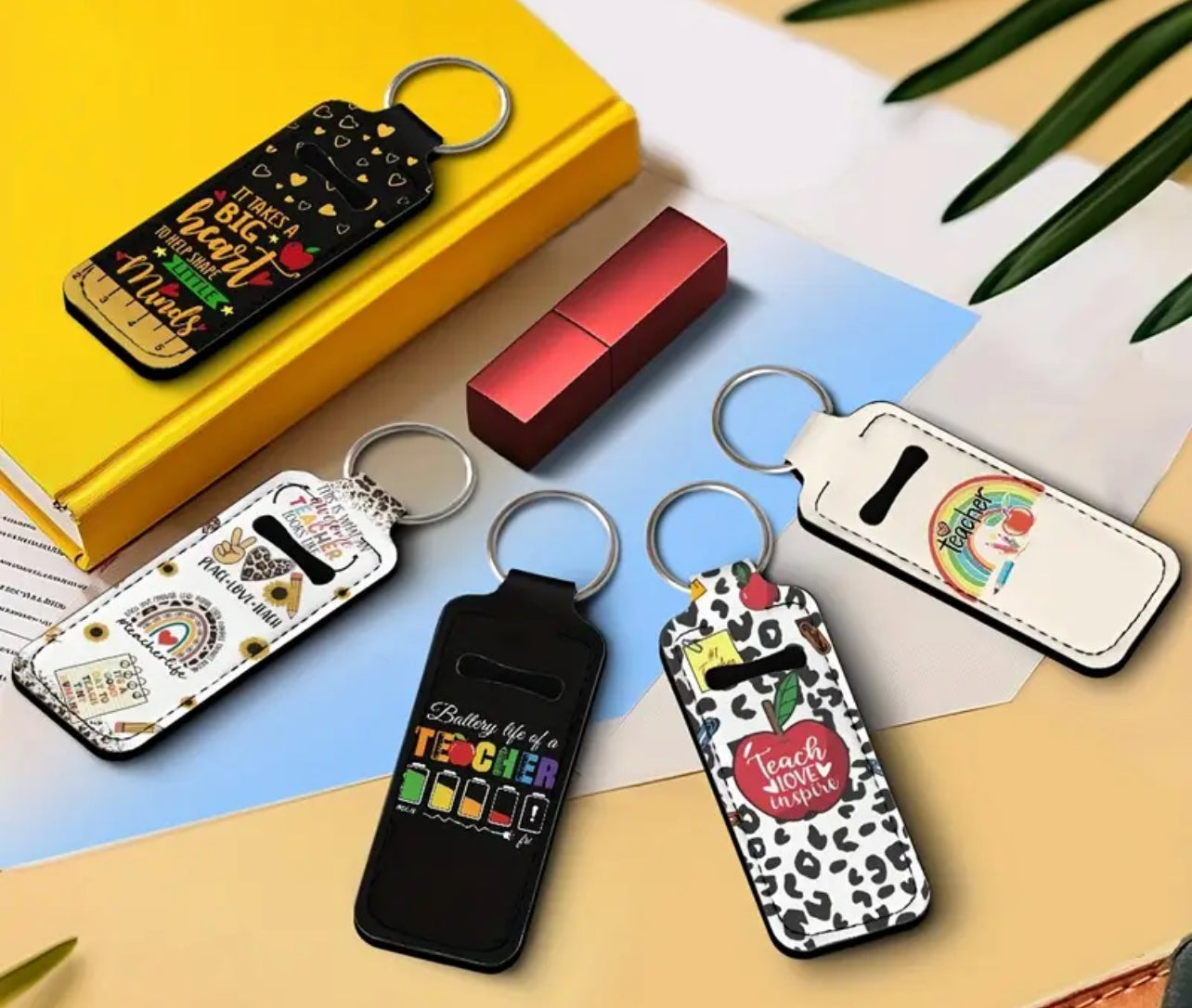 Keep your lips moisturized and show off your love for teaching with our Teacher Inspired Lip Balm Holder! This practical key chain style accessory features fun prints and includes a lip balm. A perfect gift for any teacher (and their chapped lips)!