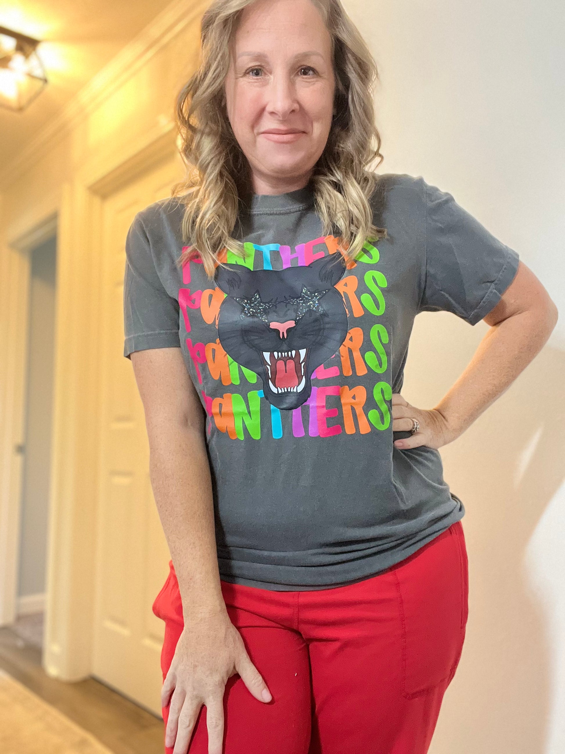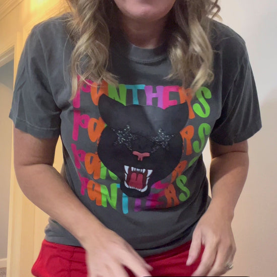 Unleash your playful spirit with our Panther Neon Mascot Tee. This bold design is printed on a high quality Comfort Colors tee, perfect for showing your love for your team (or your wild side). Get ready to roar with this unique and eye-catching tee!